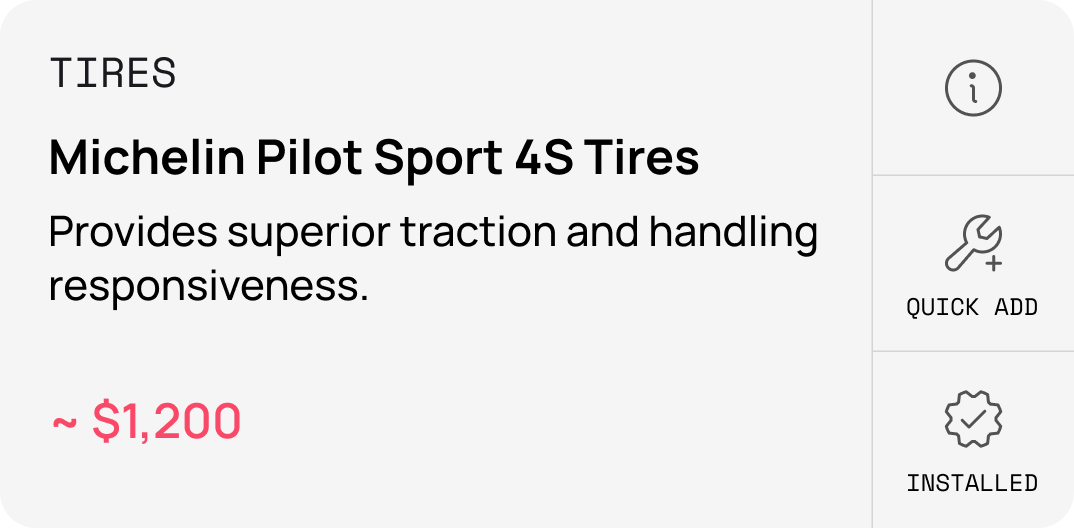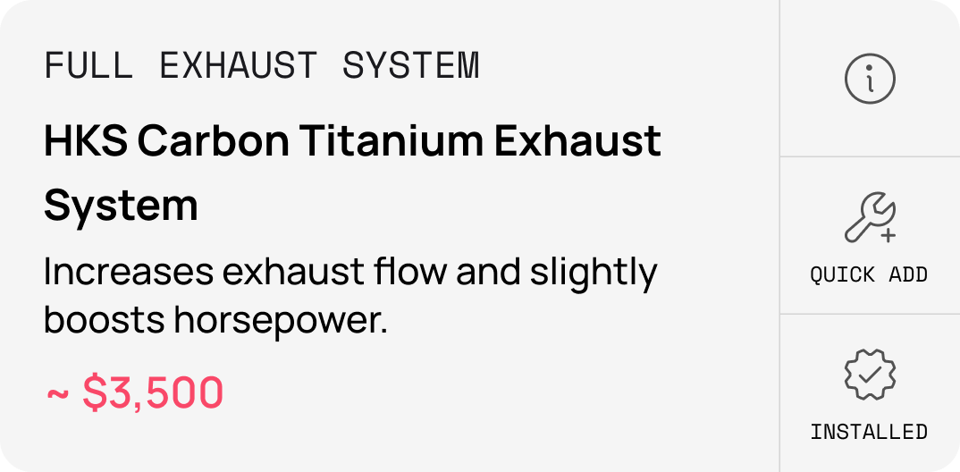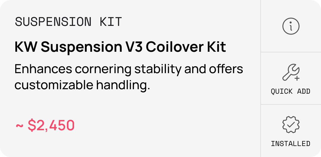 Mia is here to help you navigate the world of car customizations by understanding your car, your aspirations, and turning your dreams into reality. With a strong focus on aftermarket performance parts, Mia ensures that each modification is perfectly suited to your unique needs and preferences.